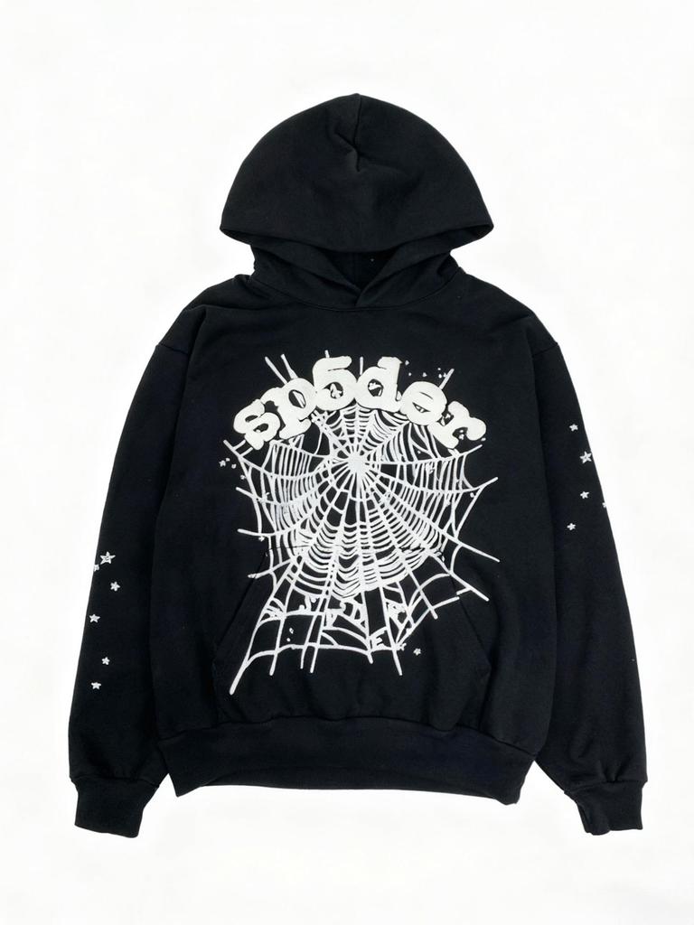 Sp5der Hög Version Spindelnätsmönstrad Huvtröja: Trendig amerikansk passform för män