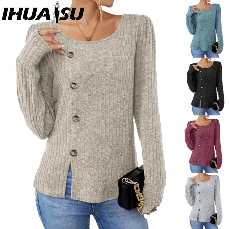 IHUASU Mode Casual Damtoppar & Skjortor Enfärgade med Tryck Långärmad Rund Halsringning