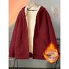 Experience unparalleled warmth and style with this heavyweight plus velvet sweatshirt, designed for the cooler months of autumn and winter. This men's cardigan features a unique stand neckline and long sleeves, offering a sleek and sophisticated silhouette. Expertly crafted from high-quality polyester material, it ensures durability and comfort. The hooded design adds a versatile edge, while the luxurious polyester fiber fur lining provides extra coziness. With its solid pattern, this black lambskin-inspired cardigan is a timeless addition to any wardrobe, perfect for layering and creating a refined, casual look.