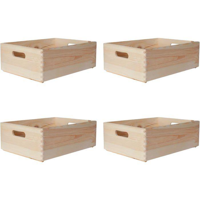 Caisse de rangement en bois - CREATIVE DECO - Lot de 4 - 40x30x14 cm - Bords arrondis - Personnalisable