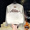 Korean Style Men's Plus Velvet Loose Pullover Hoodie - Autumn/Winter, Round Neck, Long Sleeve, Casual Trendy Design