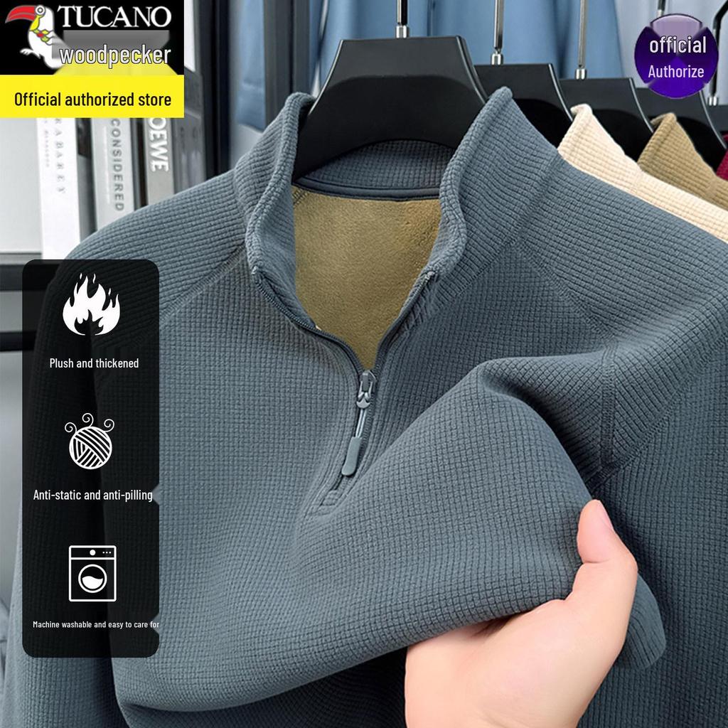 Stay cozy and stylish during the cooler months with this men's thick velvet fleece hoodie. Perfect for Autumn and Winter 2025, this garment features a luxurious rabbit fur construction for unparalleled warmth and comfort. The loose fit and long sleeves provide a relaxed yet tailored look, while the half-zip design and stand collar offer versatile styling and added protection against the chill. With its solid pattern, this hoodie is a timeless piece that can be effortlessly integrated into any wardrobe.