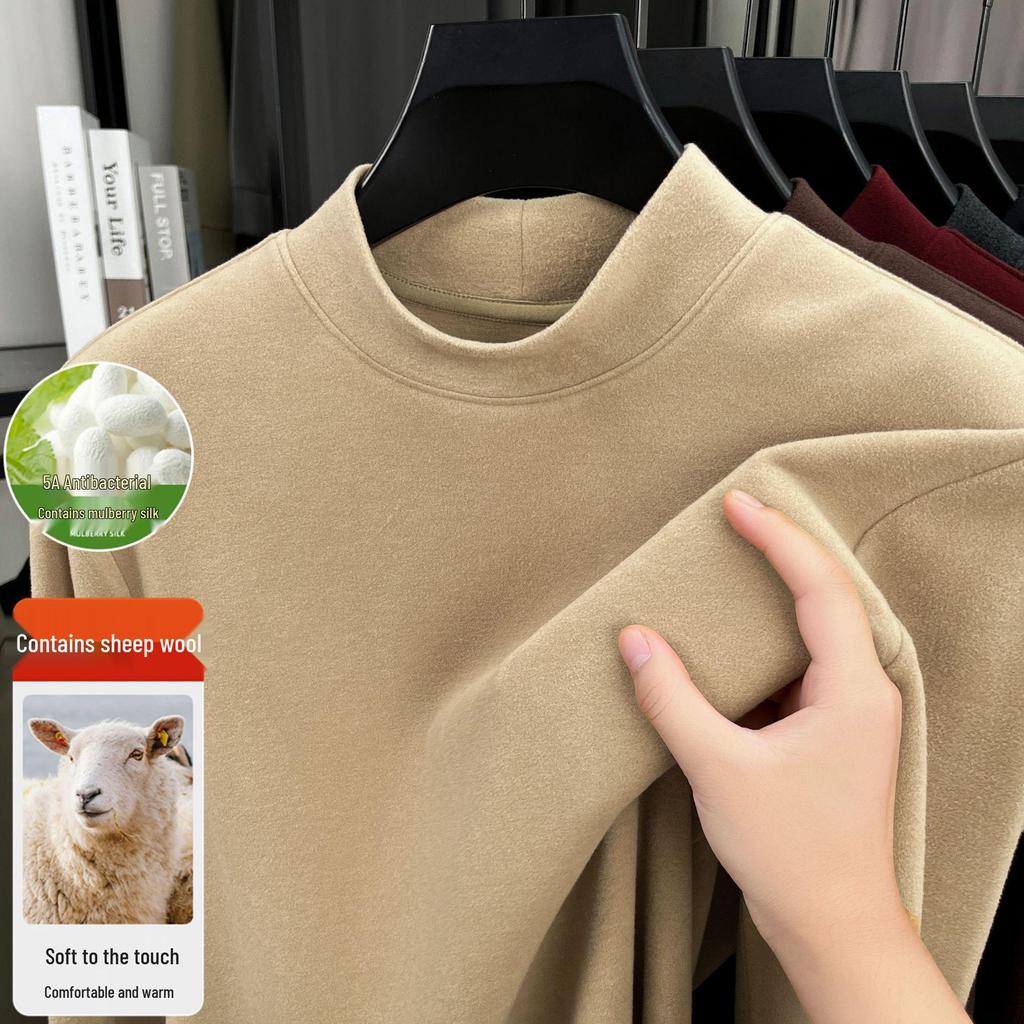 Experience the perfect blend of comfort and style with this long-sleeved, thin sweatshirt. Made from a luxurious mix of acrylic, viscose, lyocell, spandex, mulberry silk, and wool, it offers a unique combination of softness and durability. Featuring a half-high neck design and solid pattern, this sweatshirt is ideal for a modern, minimalist look. The antibacterial properties of mulberry silk ensure freshness throughout the day, making it an excellent choice for any occasion.