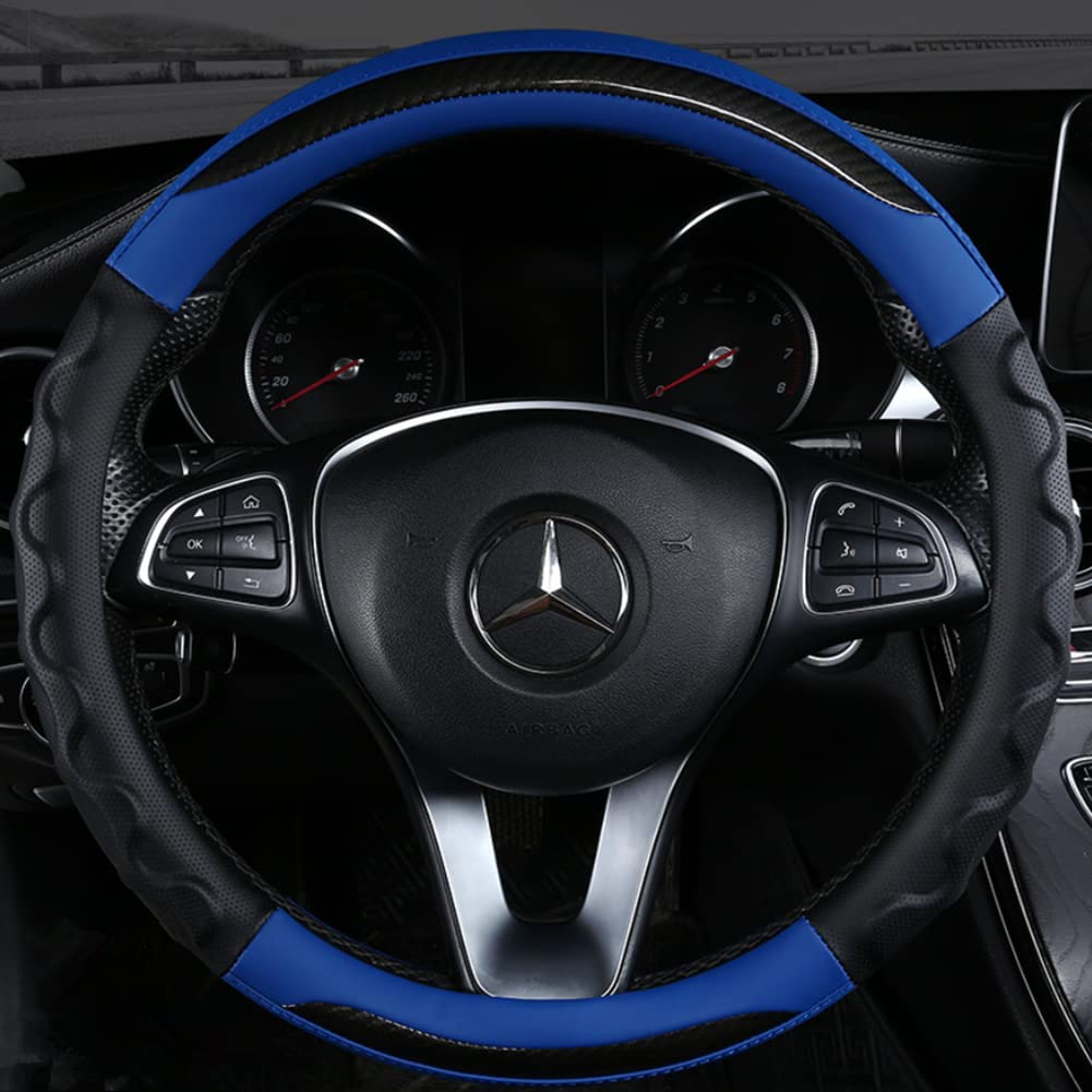 [Durable and Breathable] The steering wheel cover is made of smooth, breathable and comfortable carbon fiber and PU material, making it heat-resistant, cold-resistant and wear-resistant.