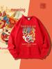 Celebrate the festive season with this vibrant hoodie, perfect for honoring the spirit of Chinese New Year. Featuring a charming horse cartoon print, this unisex hoodie offers both style and comfort with its casual loose fit. Designed with a stand neckline and long sleeves, it ensures warmth thanks to its plush plus velvet lining made from polyester fiber. The hoodie is crafted entirely from polyester material, providing durability and easy care. Whether you're out and about or relaxing at home, this playful garment adds a touch of whimsy to any casual outfit.