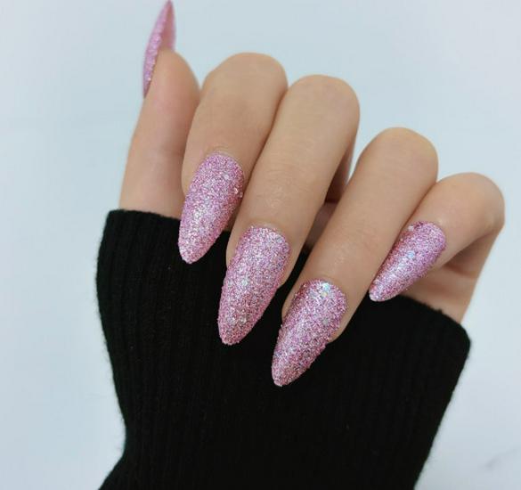 Stylish Pink & Purple Glitter Long Almond Nail Art Set - 24 Pieces