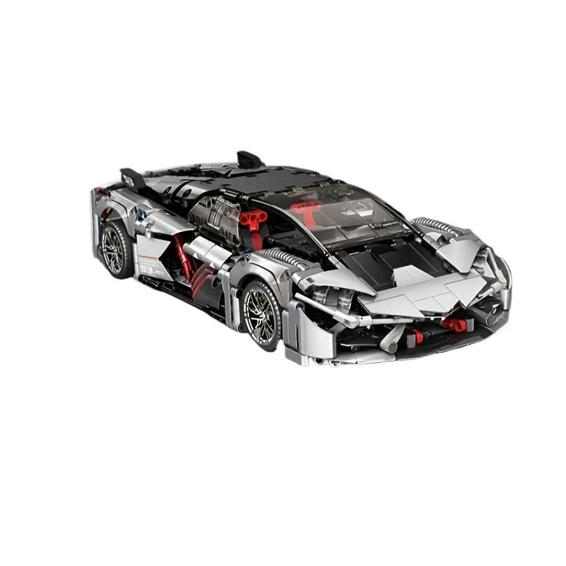 1/14 Lamborghini Silver Mechanical Supercar Building Blocks, Collectibles for Sports Car Lovers, Holiday Birthday Surprise Gifts