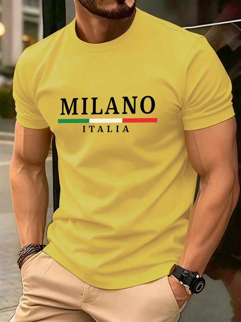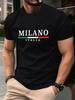 Milano Italien Flagga Färgtryck Herr T-shirt Bomull Sommar Rund Hals Kort Ärm Toppar Mjuk Överdimensionerad T-shirt Vardagliga Herrkläder