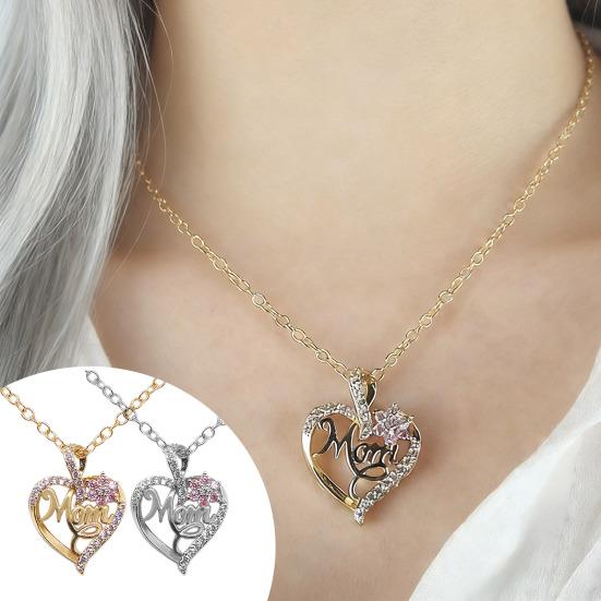 Hjärthänge Mamma Halsband Kvinnor Strass Blomma Halsband Kärlekshjärta Berlock Halsband Mors Dag Födelsedagspresent till Mamma
