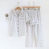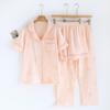 2026 New Spring/Summer Women's Pajama Set 100% Cotton Crepe Short Sleeve+Shorts+Pants 3-Piece Thin cardigan Home Clothes Ladies