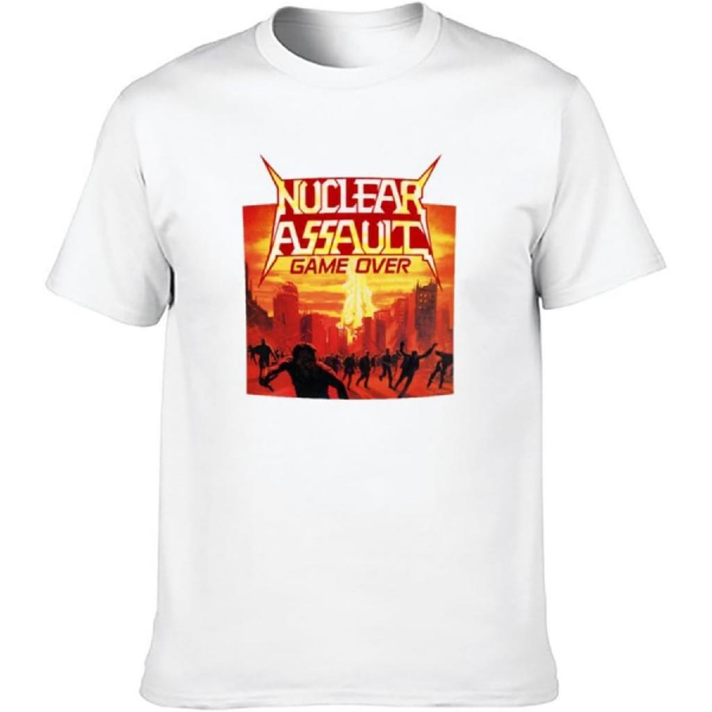 SHENGCHEN Nuclear Assault Game Over Trash Metal Band Men's Fashion T-Shirt White