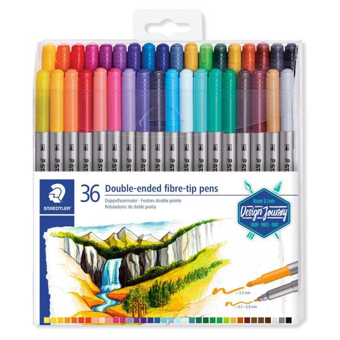 Staedtler® 3200 design journey - set 36 feutres de coloriage double pointe 3,0 mm et 0,5 - 0,8 mm assortis