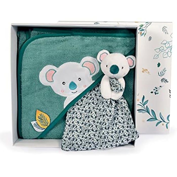Cape de bain - doudou et compagnie - yoca koala - coton doux - 80x80 cm - bleu/vert