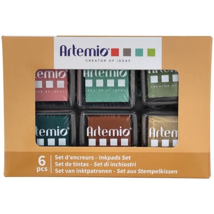 Encreurs - ARTEMIO - 3 x 3 cm - Assortiment de 6 couleurs - Pour scrapbooking et carterie