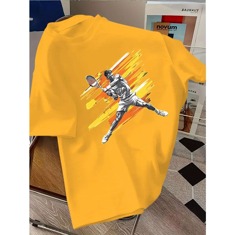 European sizes Children Short-sleeve T-shirt with a Dynamic Tennis Player Print on a Yellow Background Featuring a Fashionable Casual Sporty Style