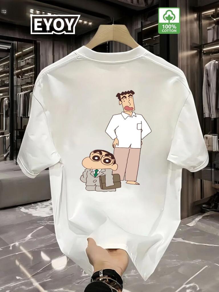 100% Bomull Herr T-shirt Bakdesign Rundhalsad T-shirt Lämplig för Vardag Vit Topp Vardagskläder Tecknad Tryck