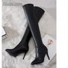 Thin High Heel Women's Black Over-the-Knee Boots Ladies Pointed Toe Sexy Leather Long Boots Size 34-40 Bottes Hautes Femme