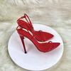 2026 One-word Fashion Sandals Women's Thin Heels Summer European and American Red Pointed High Heels Women's Shoes