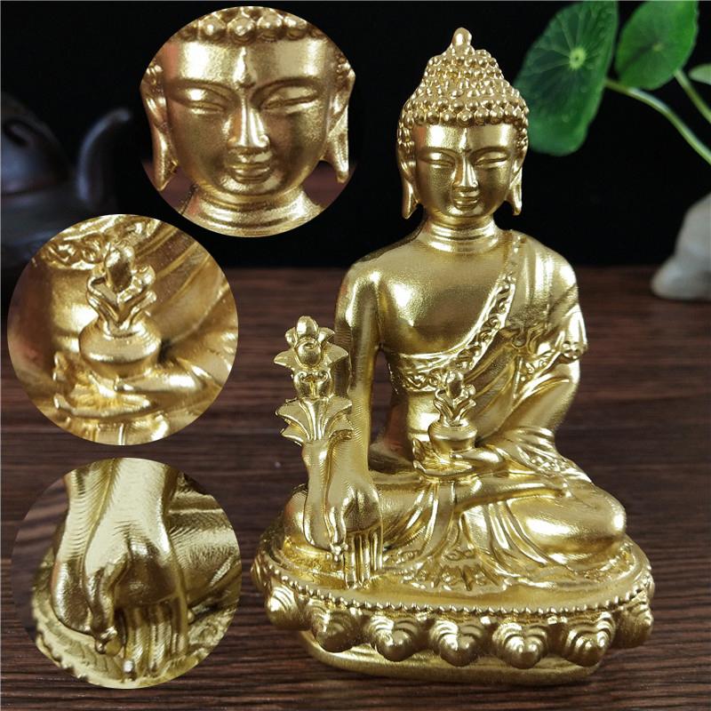 Gyllene Medicin Buddha Staty Med Halsbandsprydnad Harts Feng Shui Lycklig Buddha Skulptur Hem Kontor Trädgårdsdekoration Gåvor