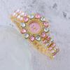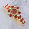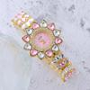 Women Heart Rhinestone Watches Flower Dial Bracelet Strap Quartz Watch Clock