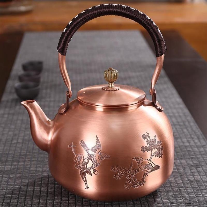 Handcrafted Pure Copper Coffee Pot,Engraving Retro Welcoming Pine Teaware 1300 ml Filter Weave Heat Handheld Kettle,Teapot