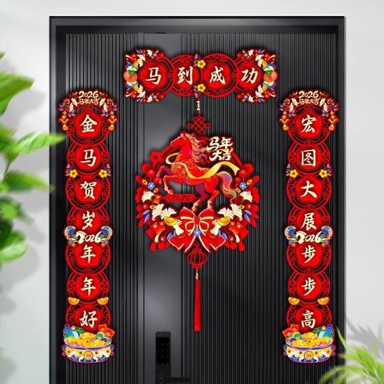 Mångsidiga tillämpningsscenarier: Perfekt för att dekorera ytterdörrar, fönster, väggar, vardagsrum, kontor, sovrum, skåp, bondgårdar och mer. Detta set anpassar sig sömlöst till olika miljöer och tillfällen som högtider, fester, festivaler och firandet av det kinesiska häståret.