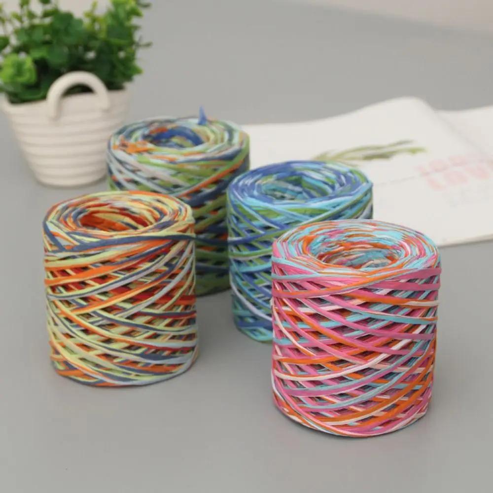 200m/Rulle Raffiapapperstråd Flerfärgad Miljövänlig Virkgarn DIY Handgjord Naturlig Raffia Flätad Tråd Presentinslagning