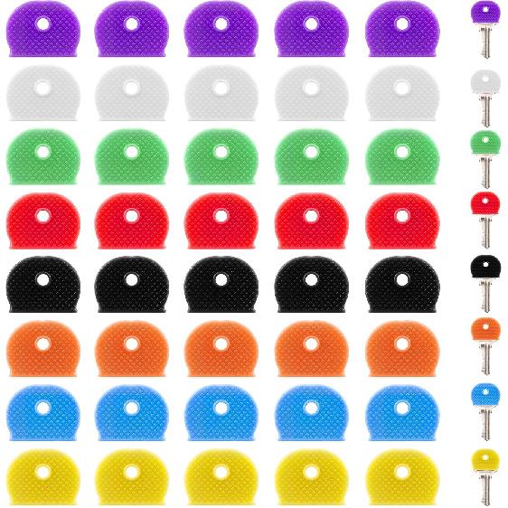 80 Pcs Colored Key Covers Caps, Colorful Keycap Set 1 Inch Key Head Protectors Keys Caps Identifiers for Standard Flat House Keys (8 Colors, 1