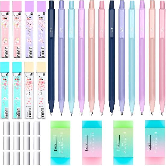 Adorable Stationery Set: the colored mechanical pencils set comes with 6 pieces of 0.5 mm mechanical pencils, 6 pieces of 0.7 mm mechanical pencils, 4 tubes of 0.5 mm refills, 4 tubes of 0.7 mm pencil refills, 4 pieces of erasers, and 12 pieces of cap eraser refills, sufficient quantity and thoughtful set can meet your daily needs