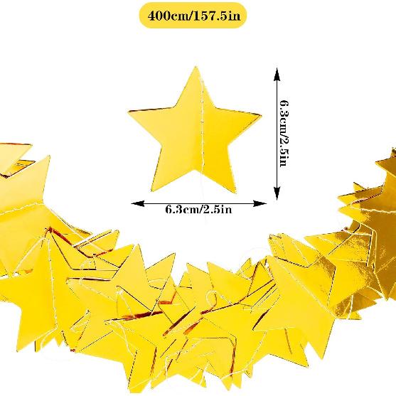 Premium Material: Gold star garlands are crafted from quality double-sided shimmer paper and durable polyester thread, ensuring the star decorations maintain their glitter effect and structural integrity