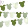 Blue Gingham Baby Shower Banner, Bodysuit Paper Garland with Clothesline, Boy or Girl Banner Baby Shower Decoration