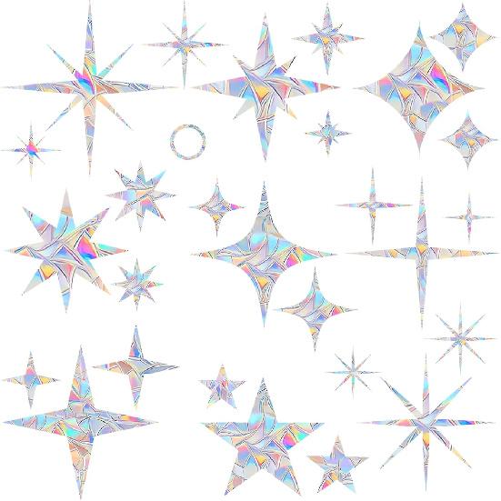 30 Pcs Star Ring Circle Window Clings - Anti-Collision Decals to Save Birds, Non-Adhesive Rainbow Stickers