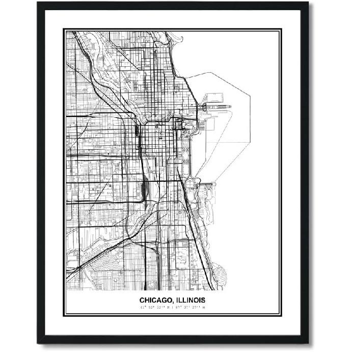 Susie Arts 11X14 Unframed Chicago Illinois Wall Art Metropolitan City View Abstract Street Map Art Print Poster Wall Decor Home Office sdm001