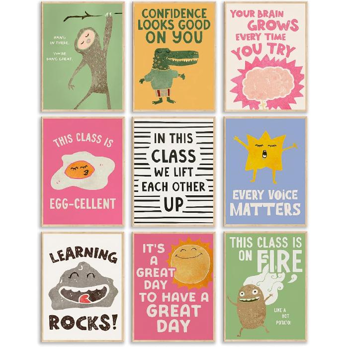 Motivational Quotes Room Decor: This set of motivational quote prints is perfect for office, home office, school, bedroom, living room, classroom, home school classroom, children's playroom, or herapist office wall decor