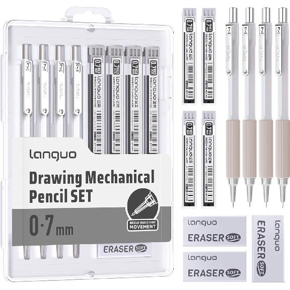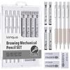 Mechanical Pencil Set with Case, 4PCS 0.7mm Art Mechanical Pencils + 40PCS HB Lead Refills + 40PCS 2B Lead Refills + 3PCS Erasers+ 1PCS Case, Drawing