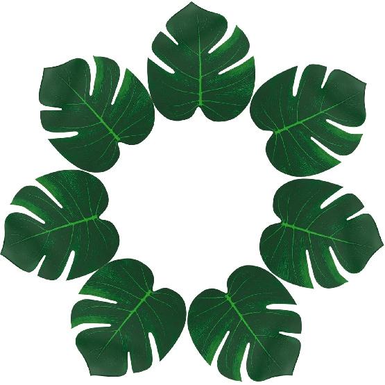 ATFL 8.3'' Artificial Medium Palm Leaves,50 PCS Fake Tropical Monstera Faux Palm Leaves for Safari Jungle Hawaiian Luau Party Table Decoration