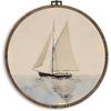 KFXHANGD Vintage Seashell Round Wall Art Framed, Coastal Shell Canvas Wall Art Decor, Coastal Sea Shells Hanging Decor for Bathroom Bedroom,