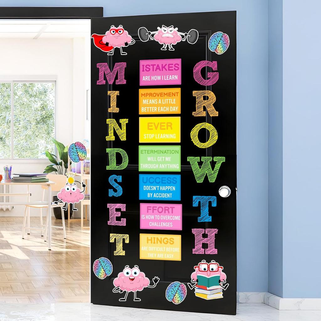 Cute Design: 8 ''GROWTH MINDSET'' window clings stickers are printed with pencil patterns, and words such as "NEVER STOP LEARNING ", "MISTAKES ARE HOW I LEARN", "SUCCESS DOESN'T HAPPEN BY ACCIDENT",