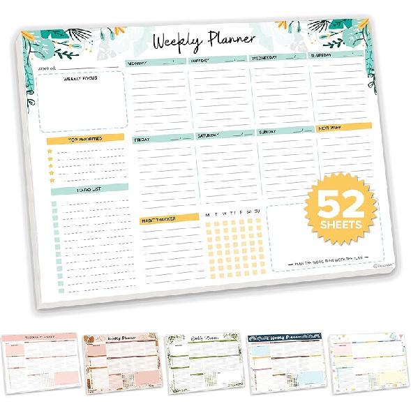 Decorably 52 Sheets Colorful Pastel Undated Weekly to Do List Notepad - 6.5x10" Spring-Bound Planner Pad, Easy Tear-Off, for Priorities, to-Do List,