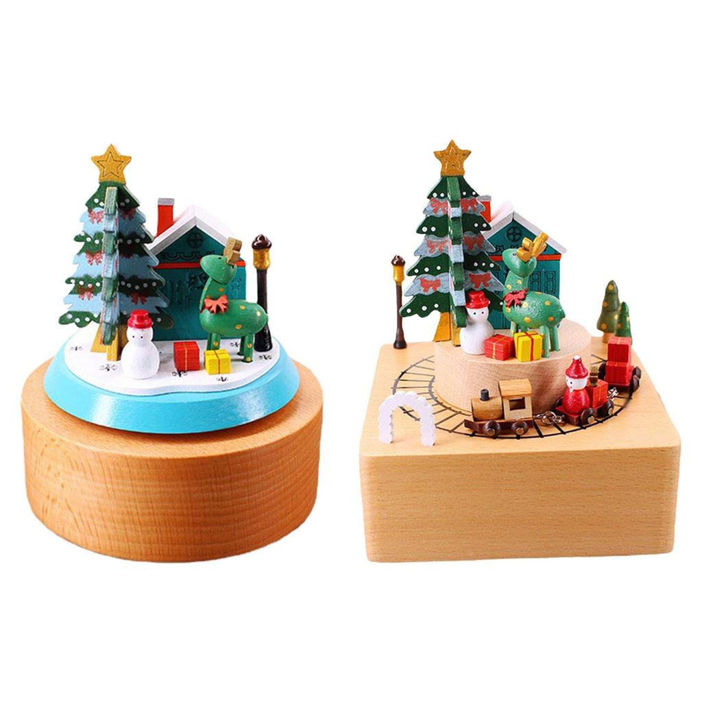 Christmas Wooden Musical Boxes Play Melody ''merry Christmas'' with Revolving Dolls Handmade for Kids Christmas Xmas Birthday