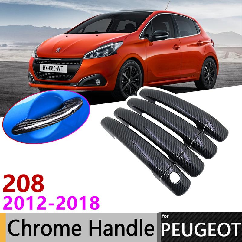 Black Carbon Fiber Exterior Door Handle Cover for Peugeot 208 2012~2018 2015 2016 2017 Car Accessories Stickers Trim Set Chrome