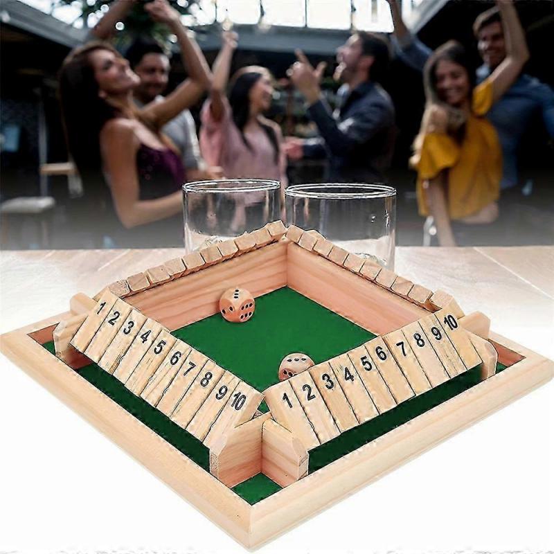 1-4 Players Shut The Box Dice Game, Classic 4 Sided Wooden Board Game with Dice for Kids Adults, Tab