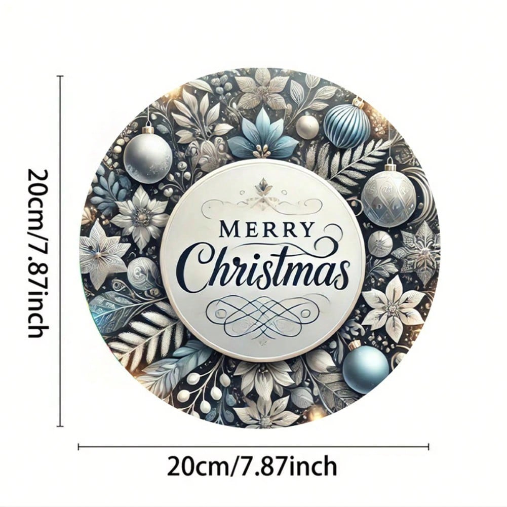 Blue Vintage Iron Merry Christmas Wreath Wall Art Plaque 8x8 Inch Home Cafe Decor