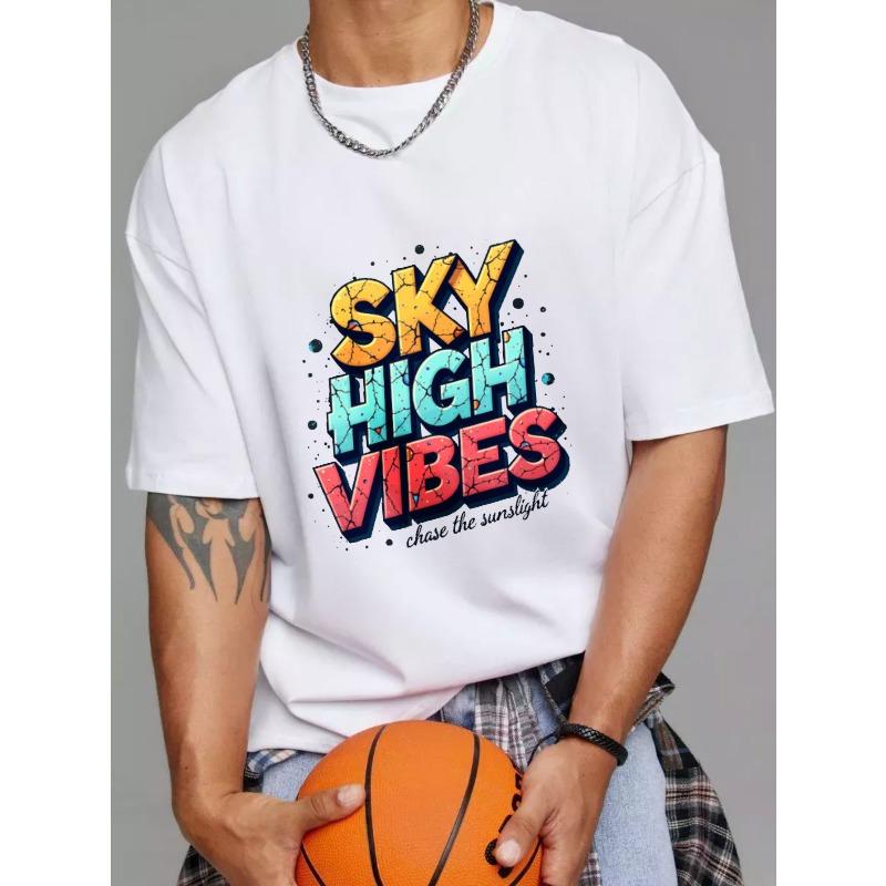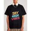 Sky High Vibes T-shirt Vit Färgstarkt Grafiskt Tryck med Texten Sky High Vibes och Chase The Sunlight för Vardagsbruk och Utomhusaktiviteter