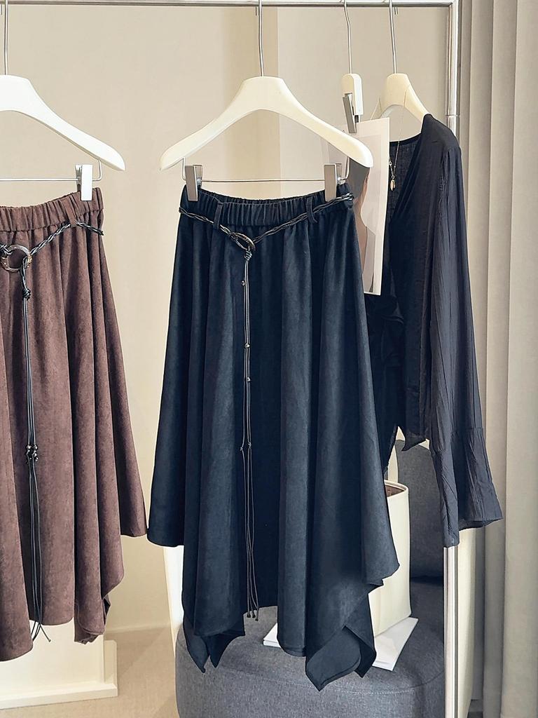 Autumn 2025 Retro Suede A-line Mid-length Skirt: High Waist, Irregular Hem, Versatile & Slimming for Women