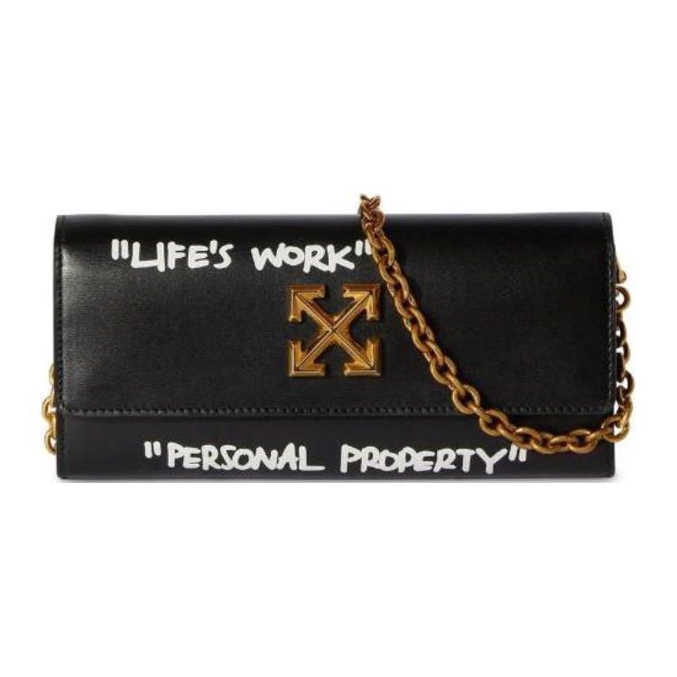 Off-White Graffiti Letter Print Metal Logo Leather Wallet Women wallet Black OWNR020C99LEA0011001