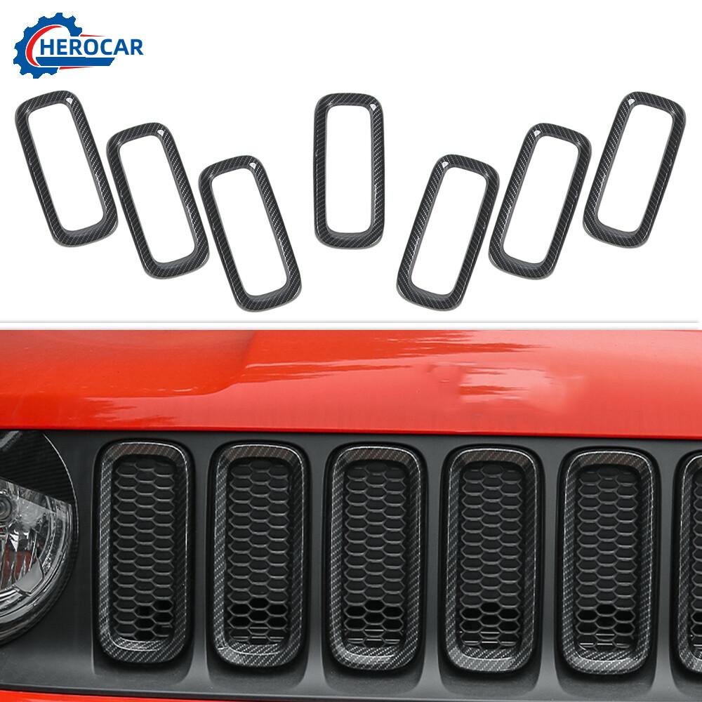 7 Set Front Grill ert Trim Grille Guard for Jeep Renegade 16-18 Carbon Fiber
