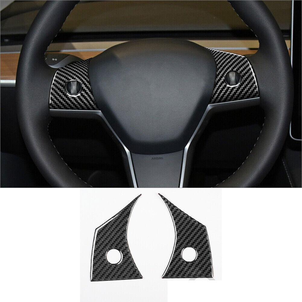 Carbon Fiber Interior Steering Wheel Button Cover Trim For Tesla Model Y/3 17-22