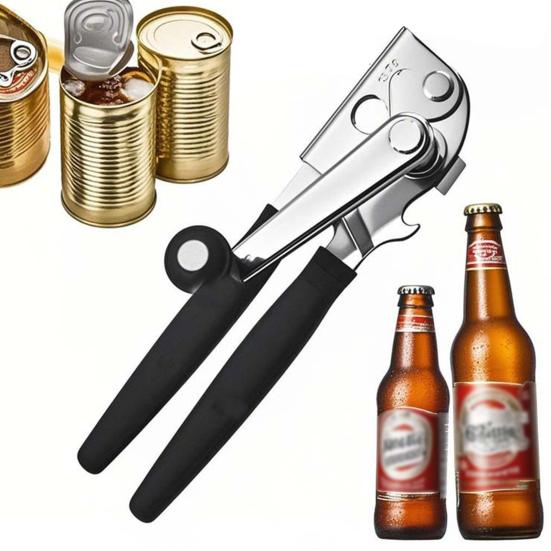 Den manuella kantdesignen inkluderar en inbyggd flasköppnare, perfekt för öl, läsk och andra flaskdrycker, som passar standardflaskor med lätthet. Dess innovativa urtag håller bladet borta från maten, vilket gör att locken säkert kan sättas tillbaka.. Perfekt för runda eller fyrkantiga burkar, detta multifunktionella verktyg är en pålitlig kökshjälp för alla dina öppningsbehov.