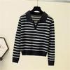Damstickad tröja med ränder och V-ringning, avslappnad långärmad stickad pullover
